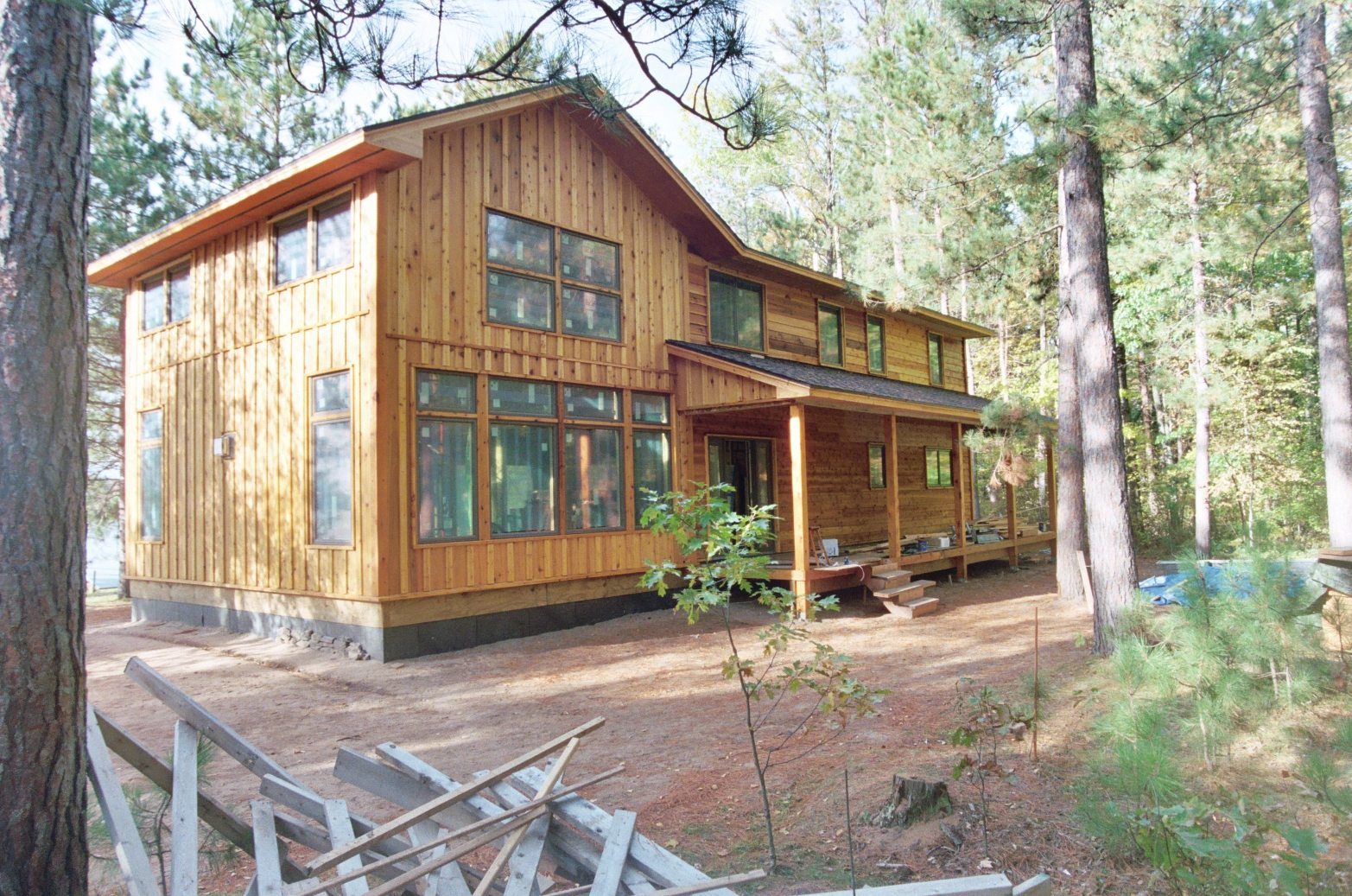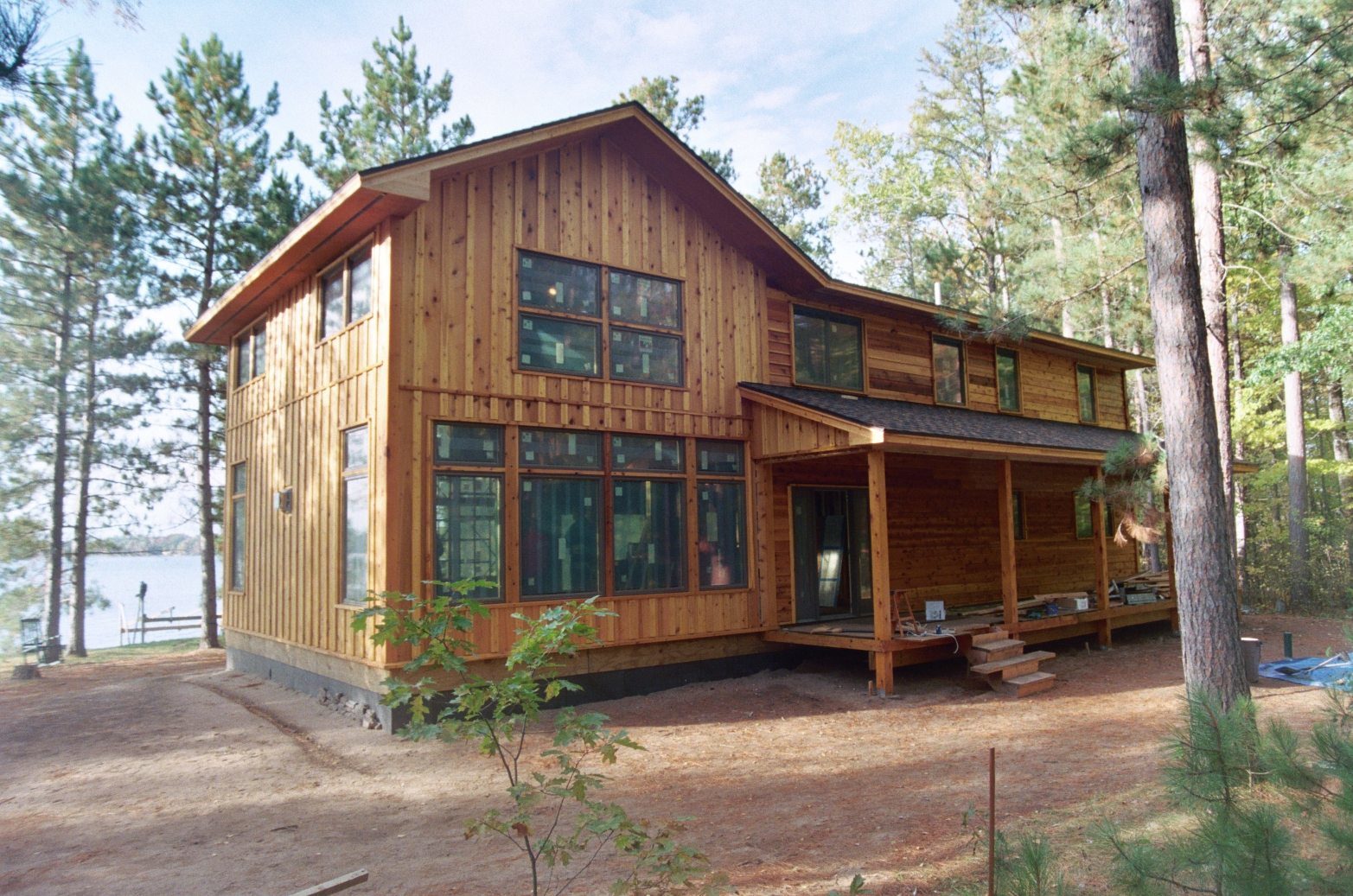 This renovated cabin takes a typical split entry home and beautifully transforms it into a dynamic two story cabin. The new design features a walk out main level, a large and welcoming front porch for enjoying the view and Minnesota summers, a lake side deck and screen porch, and a new window packed two-story living space large enough for family gatherings. The renovation/addition provided a much needed space and added plenty of cabin character to complete the experience of going to the lake.