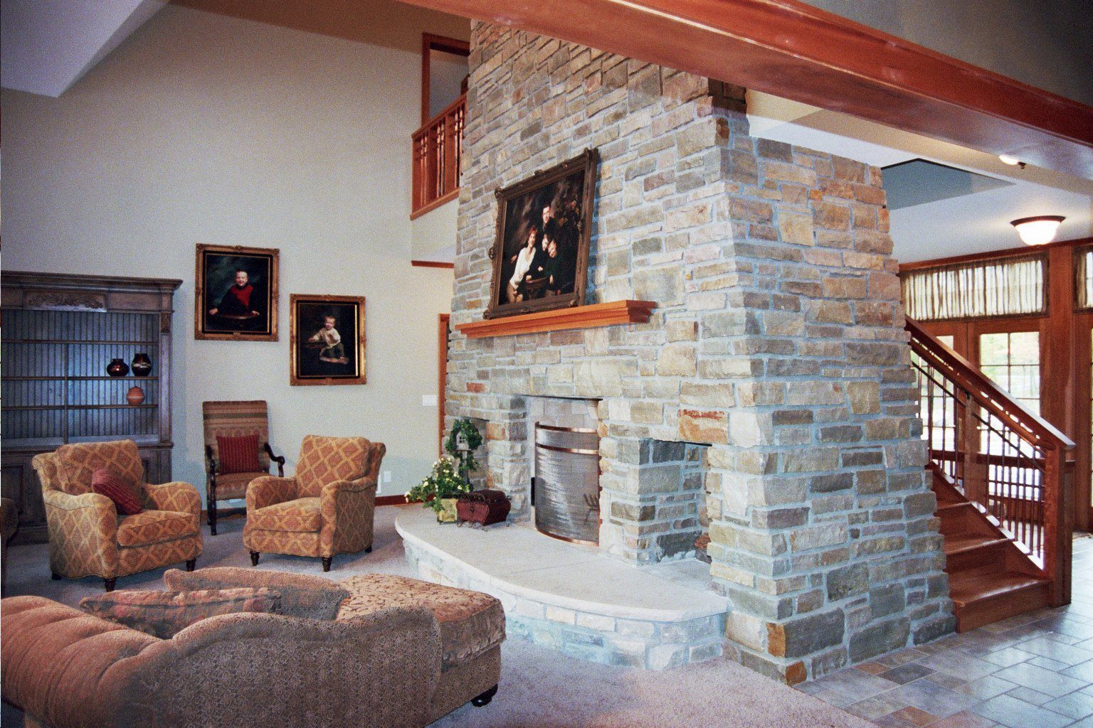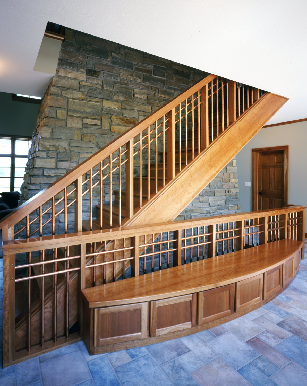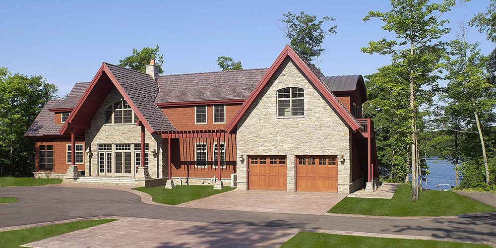 Cottage meets lodge is the essence of this lake home getaway on Agate Lake near Crosby, Minnesota. Using nature as its palette, this home combines stone, cedar shakes, Douglas fir beams, concrete roof tiles and copper dormer roofs to highlight the exterior. While cherry woodwork, copper handrails, maple floors and a three story stone fireplace adorn the interior. A two bedroom guest suite with a separate entry is showcased by the large arched dormer. A bar and kitchenette offer entertainment ease in the lower level home theater and game room making this lake home a warm, inviting, and entertaining retreat.